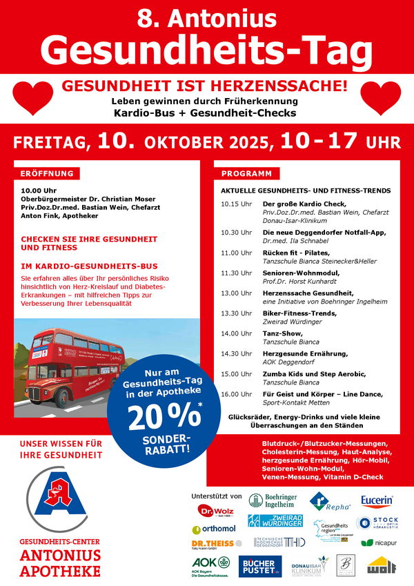 Blutdruck-/Blutzucker-Messungen, Cholesterin-Messung, Haut-Analyse, herzgesunde Ernährung, Hör-Mobil, Senioren-Wohn-Modul, Venen-Messung, Vitamin D-Check
