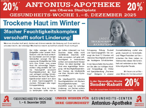 In der Gesundheits-Woche erfahren Sie alles zur richtigen Haut- und Körperpflege im Winter mit Spezialberatung „Trockene Haut“.